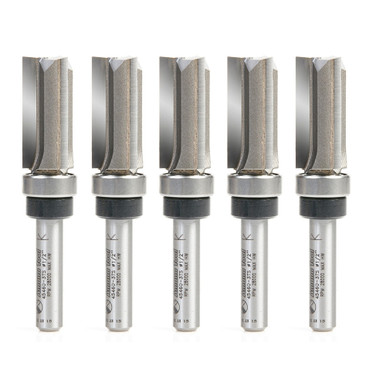 Amana Tool 45460-3TS-5, 5-Pack Carbide Tipped Flush Trim Plunge Template 1/2 D x 1 CH x 1/4 Inch SHK w Upper Ball Bearing 3 Flute Router Bits
