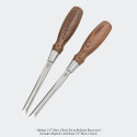 Optima Skew Chisels are available in 1/4" and 3/8" widths in left and right skew angles. The handle will fit most hands comfortably, but there's also a longer version those of us with larger hands will appreciate. You have two choices of wood for the handle: Resin-Infused Figured Maple or Bolivian Rosewood.