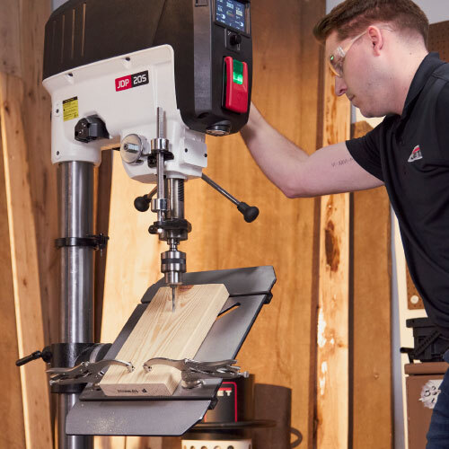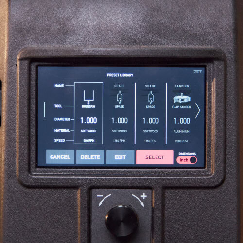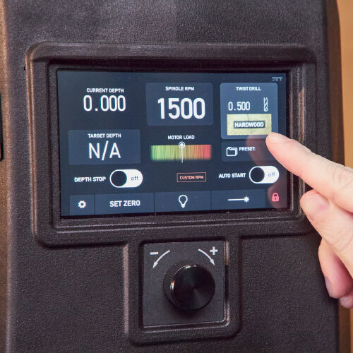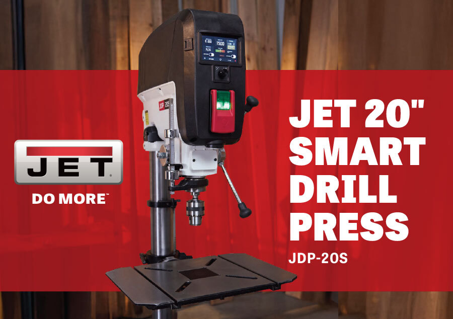 Introducing the JET JDP-20S, 20” Smart Drill Press. From its powerful 1.5HP Brushless, Motor, to the intuitive touch-screen interface, this drill press takes performance to the next level. Featuring a 6-inch spindle travel, 20-inch capacity, electronic or manual depth stop, and customizable presets, the JDP-20S is built for accuracy and convenience. Control speeds either electronically or with the variable speed dial. The built-in motor load monitoring ensures optimal performance, while the 20" x 14" work table offers ample support for every project. With the auto start function, LED work light, crosshair lasers, and password locking option, it’s a machine designed for the modern shop and every type of woodworker.