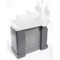 Heavy duty enclosed metal stand with storage shelf and latching door. Perfect for abrasive and accessory storage in a dust resistant cabinet. Mobile base included to make moving around the shop easy. Two-tone grey colors compliment the 19-38 perfectly.
