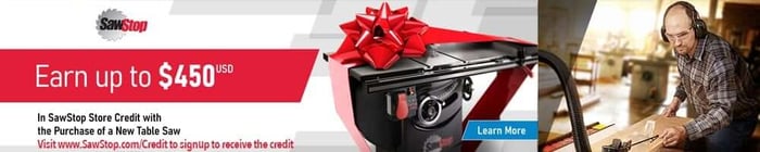 Earn up to $450 in SawStop credit with the purchase of a new table saw.