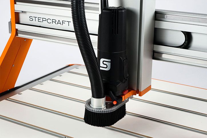 Sometimes it's the simplest things that make all the difference. Cable clutter can be a real nuisance with many CNC systems. STEPCRAFT developed the Flexi Guides™, which is included with every M-Series CNC system. These white plastic holders can be easily located in any position along the X-axis in the specially designed T-slot track. These can be used to secure any and all cables and hoses from the various STEPCRAFT CNC attachments, keeping your workplace neat and the cables and hoses from getting in the way or damaged.