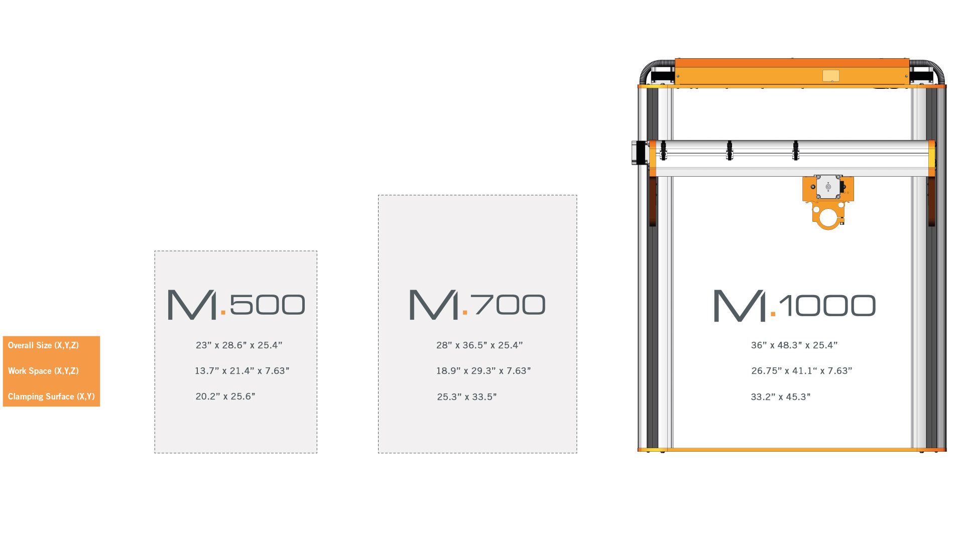 STEPCRAFT offers three different machine sizes in the M-Series so you can choose the machine that best meets your needs and budget. Each machine has all the same features and performance numbers with the physical size and size of the work area being the only difference.