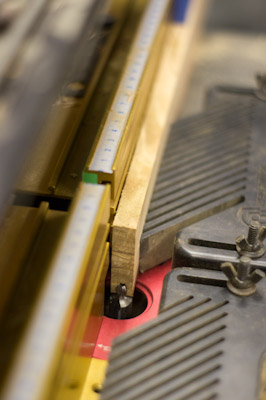 Finally, it was to the tablesaw to rip the board to the required width. With the aid of the Wixey Height Gauge, the fence was accurately set away from the blade, and then a second pass was taken with the blade just high enough to clear out the bulk of the material, so the ball-bit doesn’t have to work too hard. When this is shaped, it becomes the test piece to check for fit.