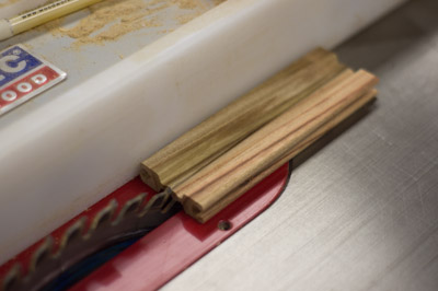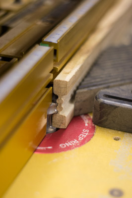 With the slot sawn, then routed, the final step is to split the two profiles apart.