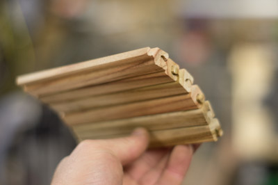 Very quickly, I had a whole set of tambour door parts. They slotted together very easily, and what I was left with, was a perfect camphor laurel tambour door!
