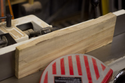 Started with a piece of camphor laurel, run it through on the flat on the planer and then squared up the first edge.